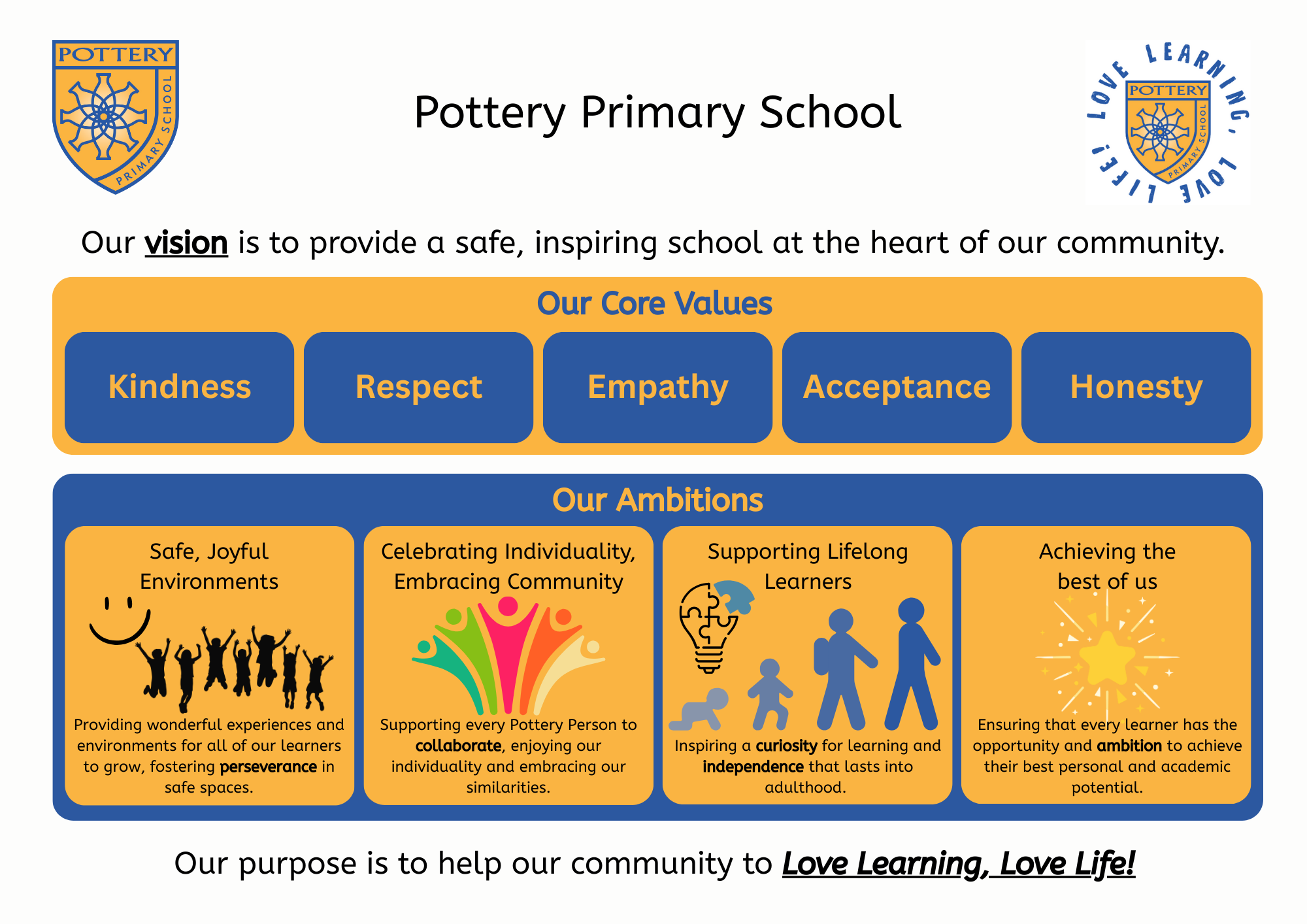 At Pottery Primary School, we are passionate about creating a vibrant and exciting environment where every pupil feels happy and safe.